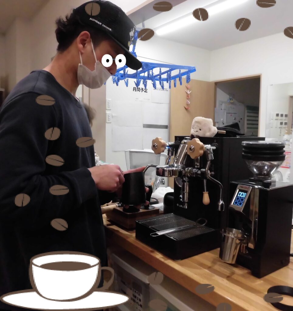 趣味で自前のコーヒー機械を持参
